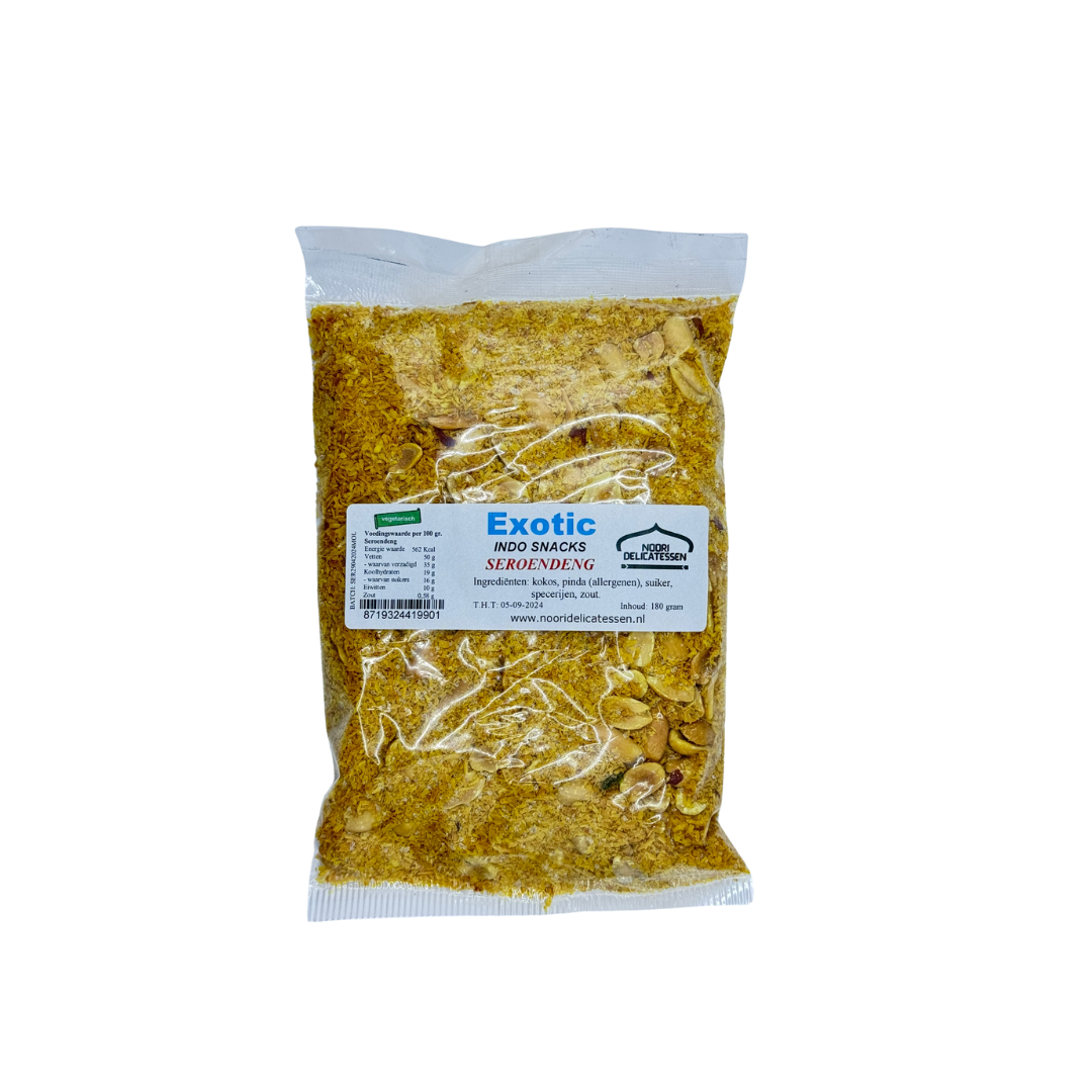 Ingrediënten: kokos, pinda (allergenen), suiker, specerijen en zout